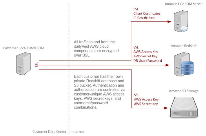 A diagram of the customer's local batch FOM to cloud components showing secure data channels...